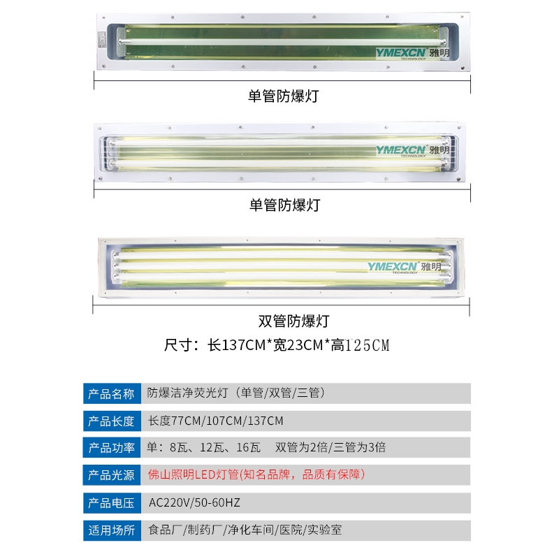 防爆洁净荧光灯是比较长的,重量也很重,外形尺寸1370x225x135mmx,重量有10多公斤。