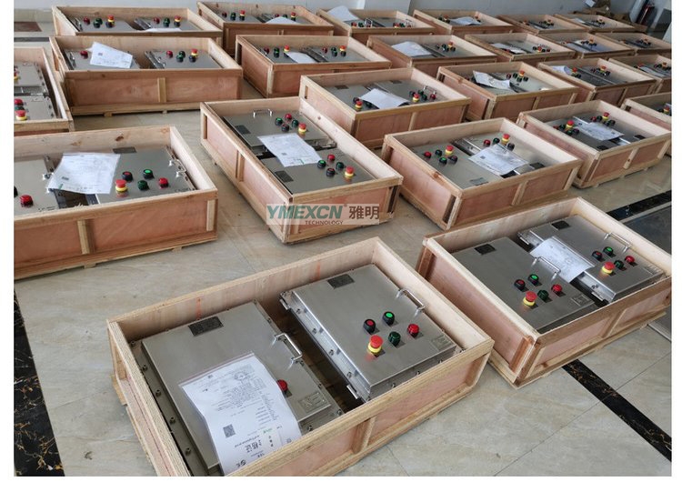 3 防爆控制箱一般有复合型和隔爆型两种结构。复合型外壳采用增安型结构,内装元件采用隔爆型元件或增安型的元件;外壳采用ZL102铝合金压铸成型,表面高压静电喷塑,内装的元件有按钮,控制开关,仪表等均为防爆元件。