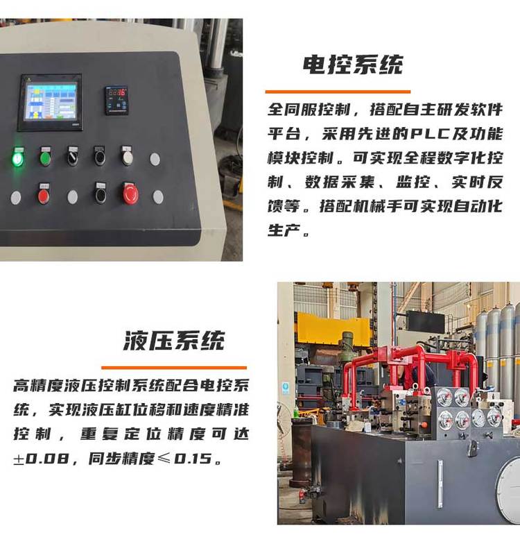 桥壳内高压成形技术相比传统工艺具有显著优势,可消除焊缝缺陷、提高强度和刚度、减轻重量并降低成本。该技术采用清洁环保型技术,提高材料利用率,减少废料产生,改善工作环境。随着汽车市场竞争加剧,采用内高压成形技术已成为提升产品品质和降低生产成本的必要途径。下面是一台汽车一体桥壳水胀成型液压机。