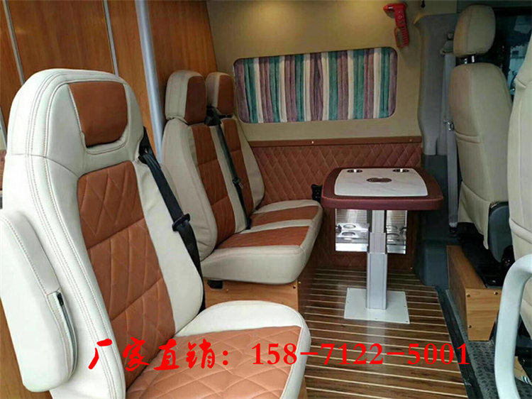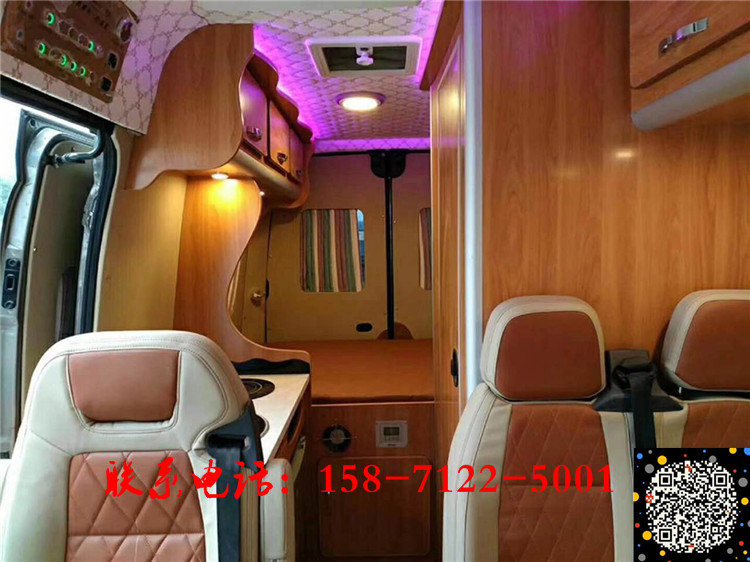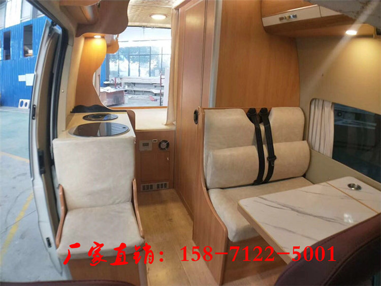 整车内饰的布局从车头到车尾依次为驾驶舱、客厅、厨房和卫生间。由于该车采用短轴底盘打造的,因此空间上比较紧凑。