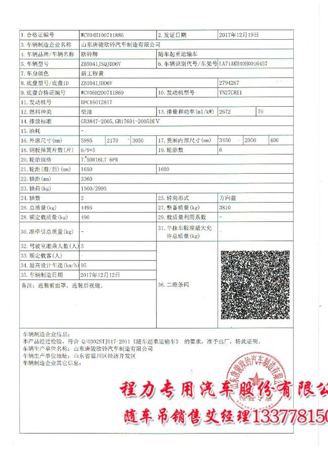 公司还生产叉车吊叉车尾吊及大吨位江威随车吊