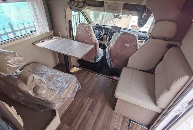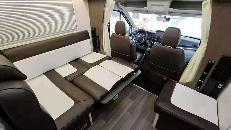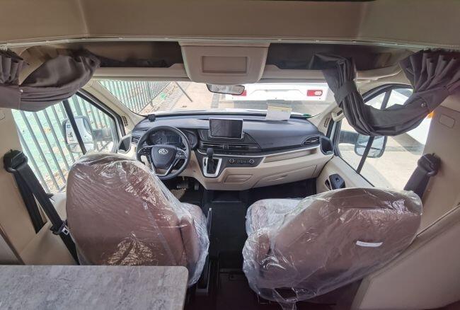 驾驶舱配有多功能方向盘、定速巡航、胎压监测、坡道辅助系统、电动加热加宽后视镜和倒车雷达等辅助安全配置。驾驶舱上部是一张双人额头大床,额头床的两侧和顶部都设有开窗,保障日常采光和透气。额头床的外部设有保护隐私的布质挡帘。