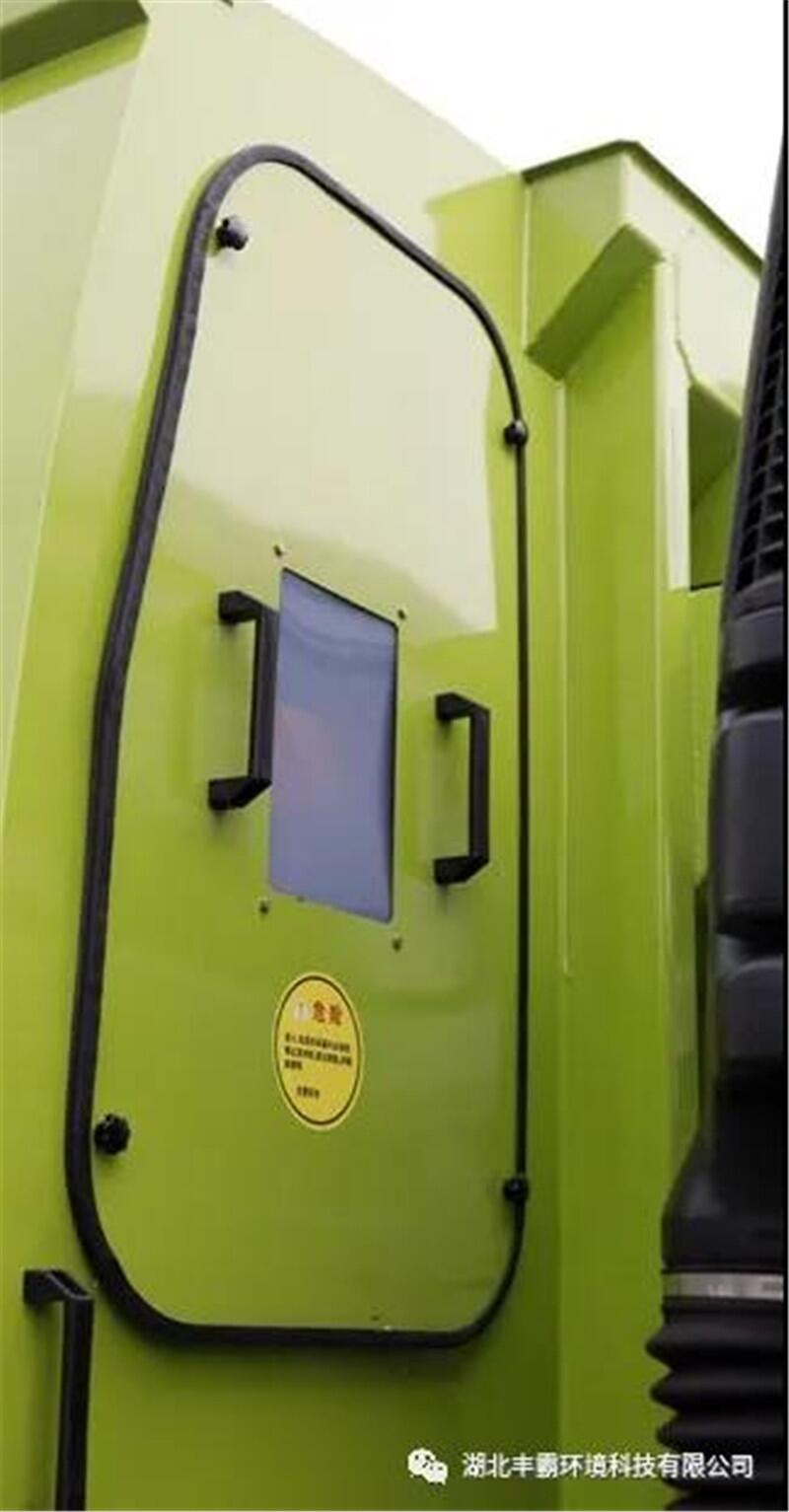 7)中央污水异型导管设计,防止了污水泄漏,料斗、污水厢一体化设计,彻底解决了跑、冒、滴、漏等二次污染问题。箱体和填装器之间具有液压自动密封锁紧装置,采用锁钩锁紧而非插销式锁紧,有效防止污水泄露,以免造成二次污染。