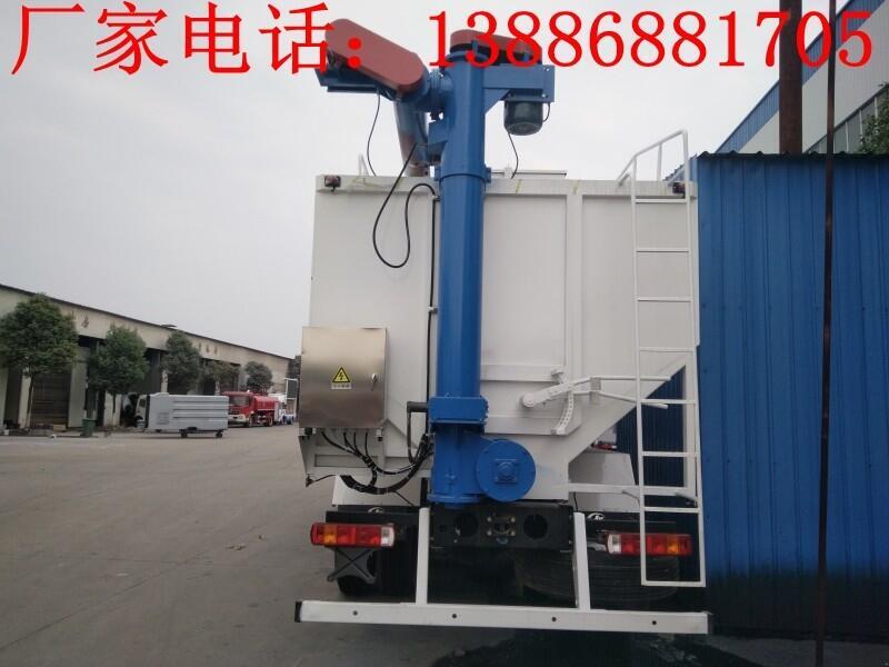 上装配置: 罐体可根据用户要求做多个独立分仓,可以独立控制各分仓卸料顺序和速度。罐体材质采用4mm优质碳钢板,整车3条绞龙,有3个5.5KW电机(万邦 西门子)带动,顶部绞龙液压控制举升,可左右旋转180°,罐体可根据用户要求做多个独立分仓,可独立控制各分仓卸料顺序和速度,卸料管倾斜60度,垂直卸料高度8.5米,整车卸料完用时20分钟。