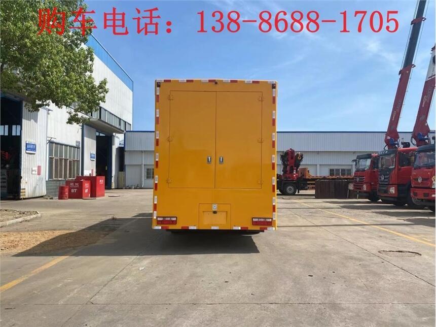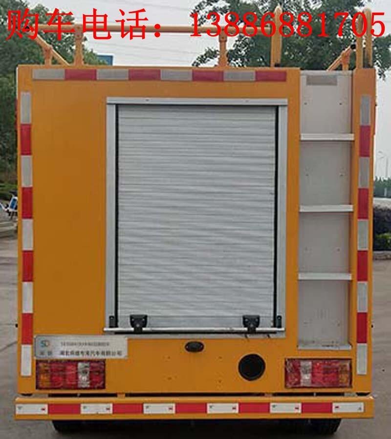 选装行李架、爬梯、车顶工作台;选装不同形状、结构的警示灯;选装中隔断(可选择开门)、车身两侧可选开上掀门、盲窗、侧开门;花纹铝板;加装设备工具柜、配电箱、发电机组、水泵、电焊机、空压机等线路安装外接电源系统、(室内灯光照明、探照灯、高杆照明灯等);绕线盘,还可根据用户不同需求加装不同的维修抢险设备、车身制作专用图案或标识。备注:其他车型以及配套垃圾箱详细参数、配置请电议!