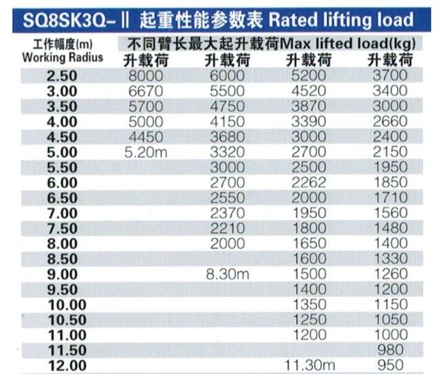 起重机主要技术参数 | SQ8SK3Q | 单位 |