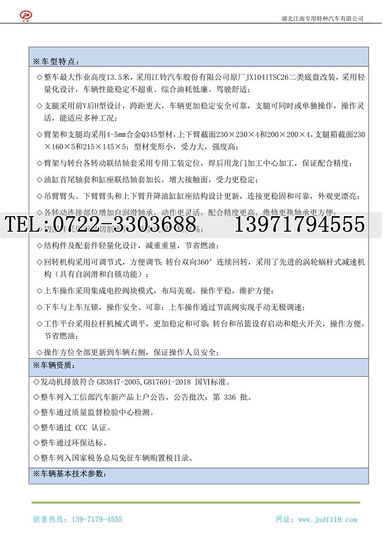 2020年11月27日新款上市江铃13.5米曲臂高空作业车现货热销,整车作业高度13.5米,三节折臂,现货全国直销,全国可分期购买,高空作业车可根据客户需求定制,同款车型因选装配置不同(可选不同发动机、上装专用配置等),价格差别较大,关于采购计划、购车方案设计、产品价格等可免费咨询:胡经理139-7179-4555(微信同号)。