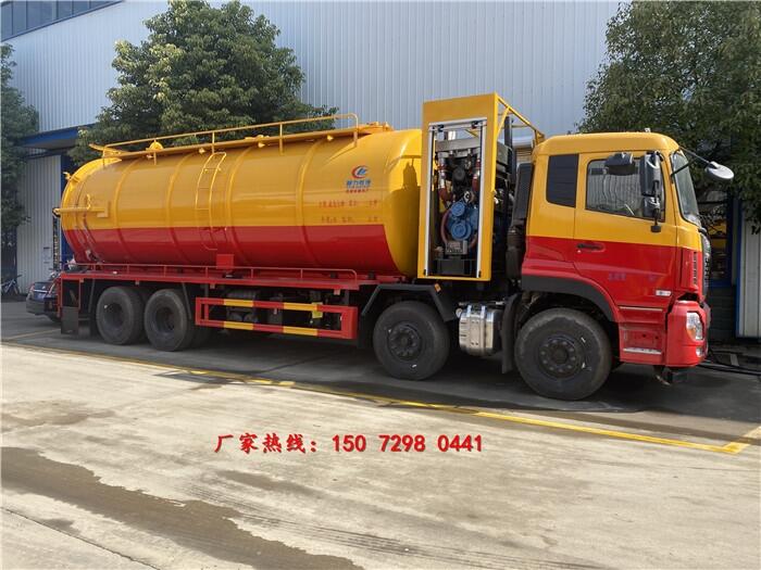??吸污车关键件是真空泵,利用真空泵工作产生的压力差进行抽污。安装进口防溢流装置,防止粪便、污水因吸满倒灌至真空泵。吸污车采用圆形罐体,具有液压举升自卸功能,便于将各种污泥倾倒干净,而且后罐门可以液压自动开启,便于清理罐的沉积物、凝固物及对罐部进行维修、。