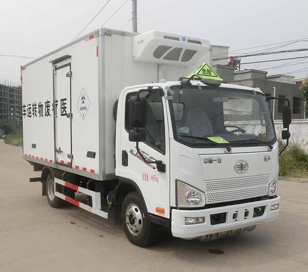 随底盘选装驾驶室,选装右侧厢体前部开门,选装多种型号功率相当的制冷机组,厢体顶部封闭,不可开启。运输品名:感染性物质,类项号:6.2,防护材料:Q235A碳钢,连接方式:左右侧面及后下部防护均采用焊接连接,后部防护断面尺寸(mm):100×50,后部防护离地高度(mm):410。该车安装带有卫星定位功能的行驶记录仪。仅采用前盘制动器和安装ABS以及前置消声器的底盘.转向轮安装爆胎应急防护装置.采用子午线轮胎。安装限速装置,限速80km/h。ABS厂家及型号:1.广州瑞立科密汽车电子股份有限公司/CM4XL-4S/4M;2.浙江万安科技股份有限公司/VIE ABS-II。发动机型号对应油耗申报值(L/100km):WP2.3NQ130E61/11.41.选装ETC车载装置; |