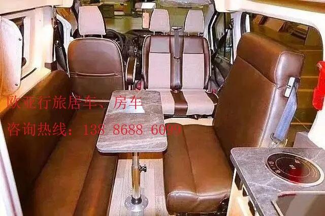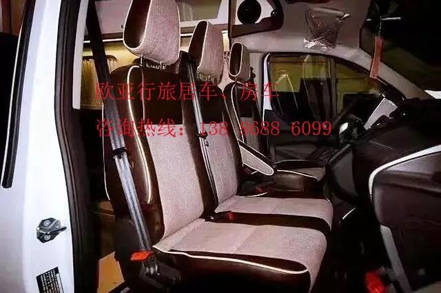 房车驾驶室是2+1的座椅模式,副座椅可旋转使用,与后方卡座形成对坐的模式。
