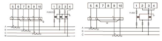 三相四线 (3PT、3CT)???????????????????? 三相三线(2PT、2CT)