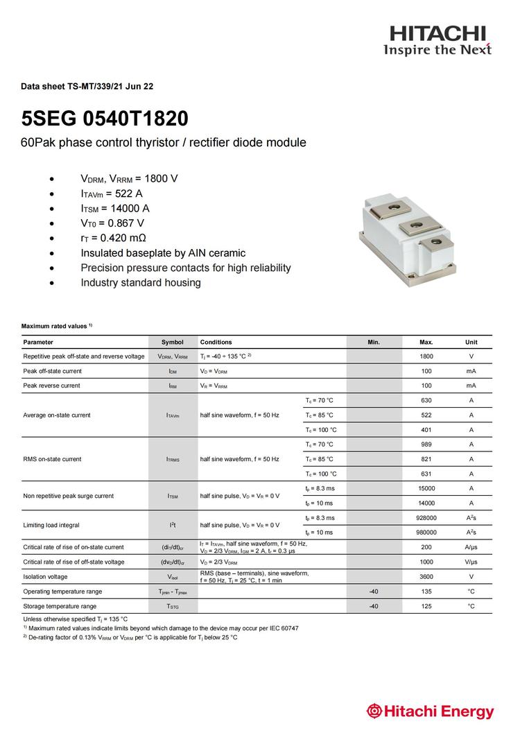 5SEG 0540T1820 (540A/1800V) 品牌 | 日立能源 | ||