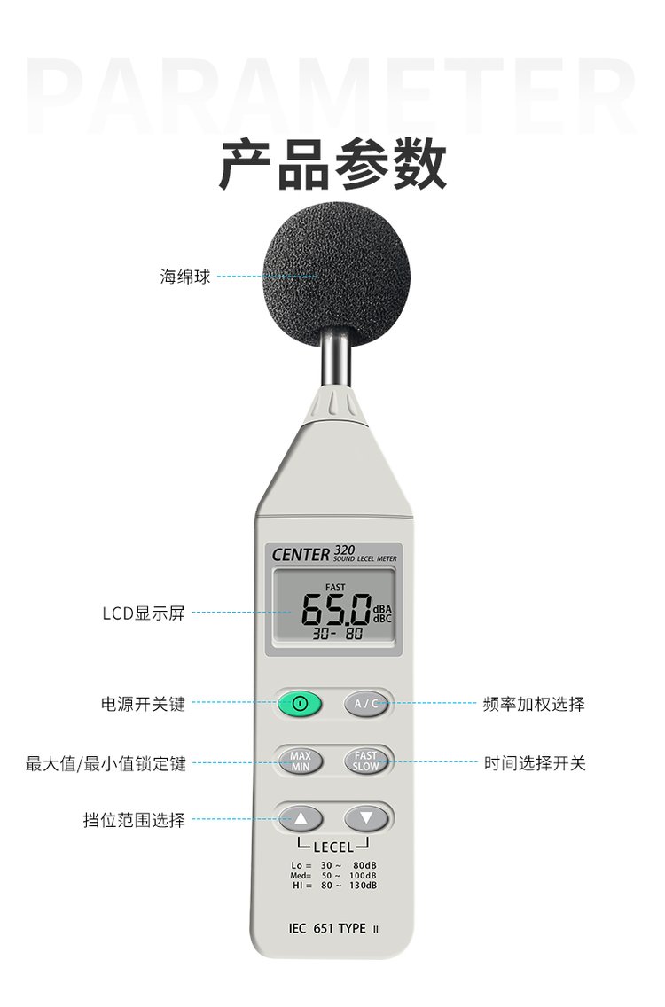 群特CENTER-320/321数字噪音计CENTER-322记录式声级计分贝噪声仪 品牌 | 台湾群特CENTER | ||