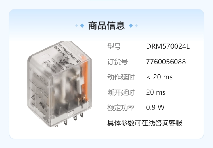 现货 Weidmuller/魏德米勒 带LED中间继电器 7760056088 DRM570024L 型号 | DRM570024L | ||