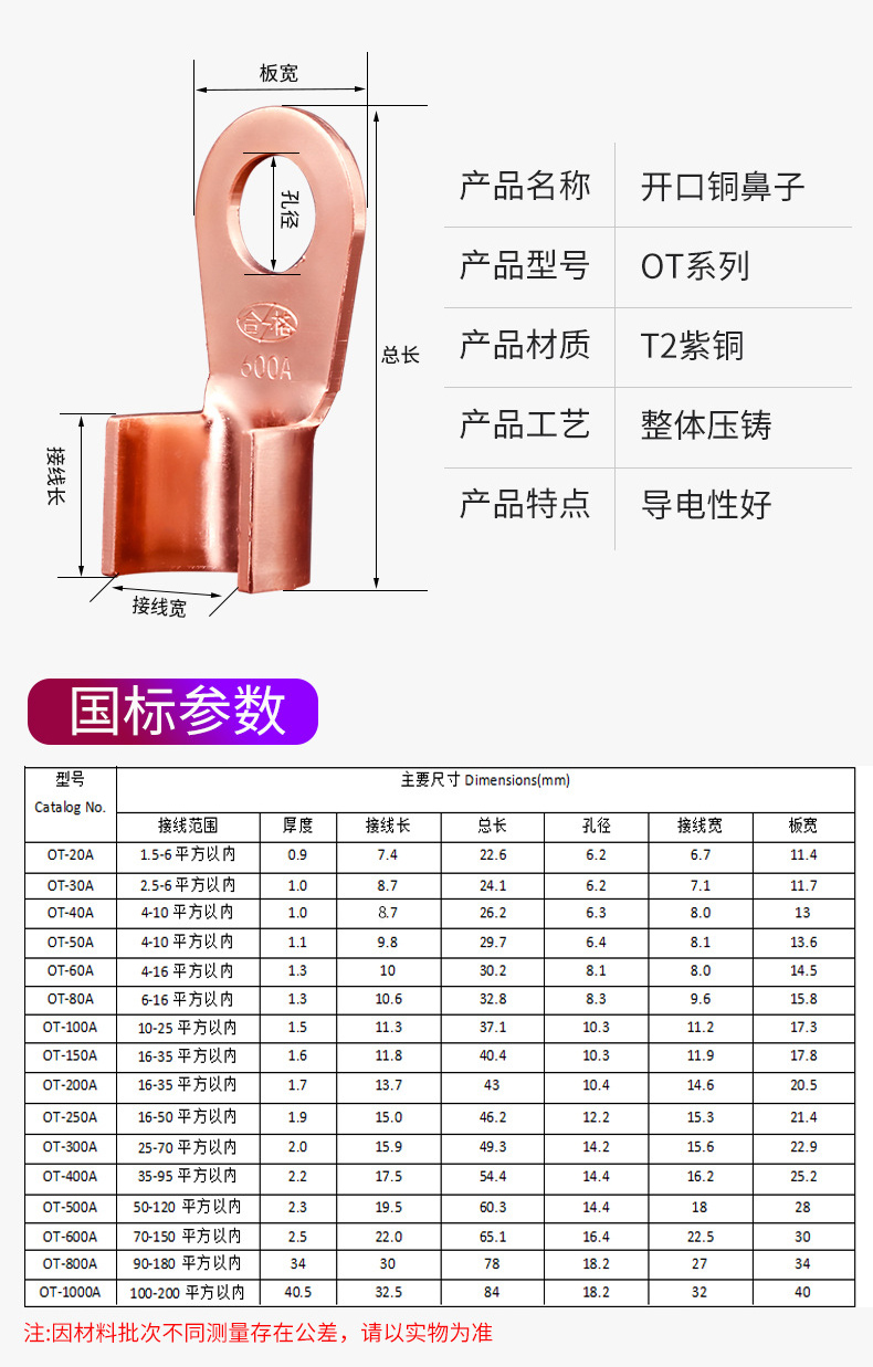 型号 | OT系列开口铜鼻子 | ||