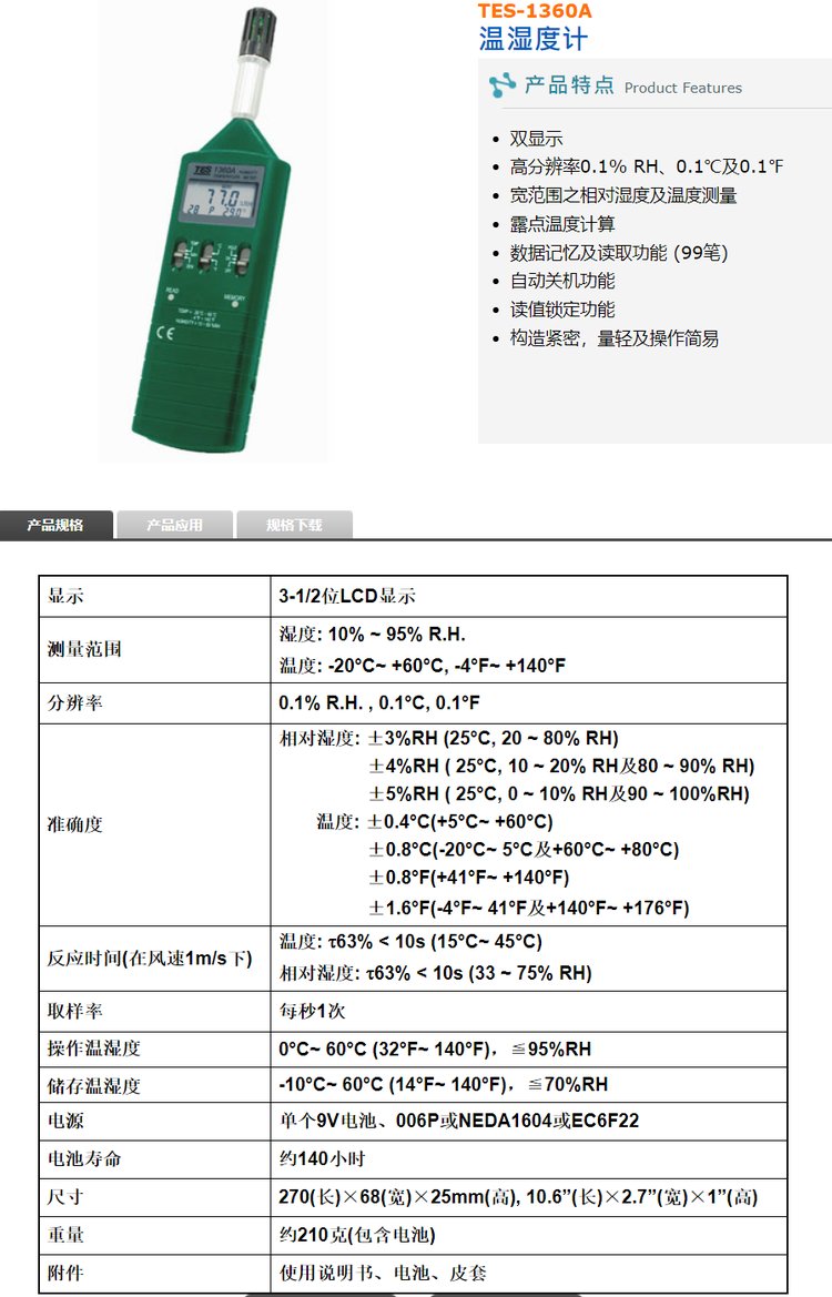 适用范围 | 环境温湿度测量 | ||