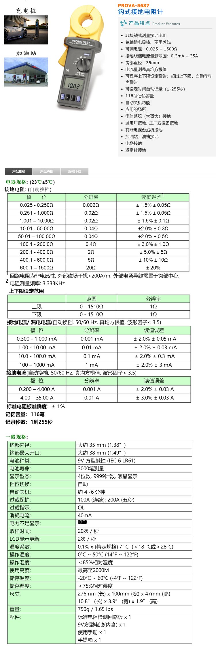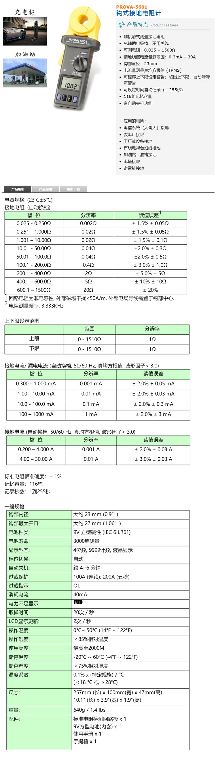 TES泰仕 PROVA-5601/PROVA-5637 钳式接地电阻测试仪 非接触式电阻计 品牌 | 泰仕TES | ||