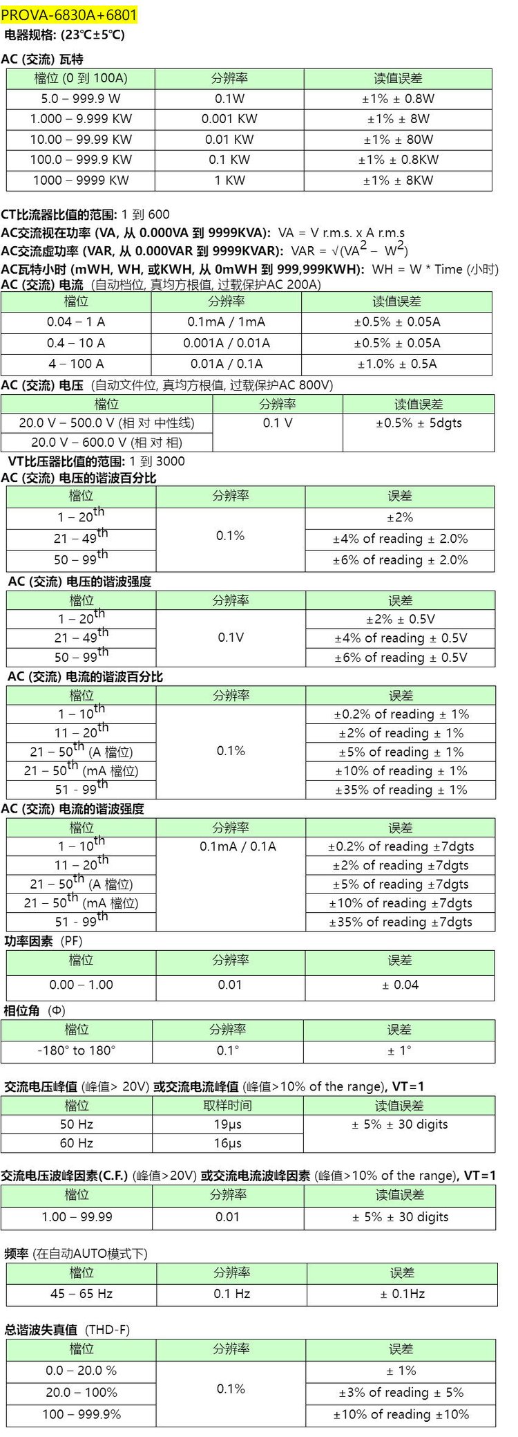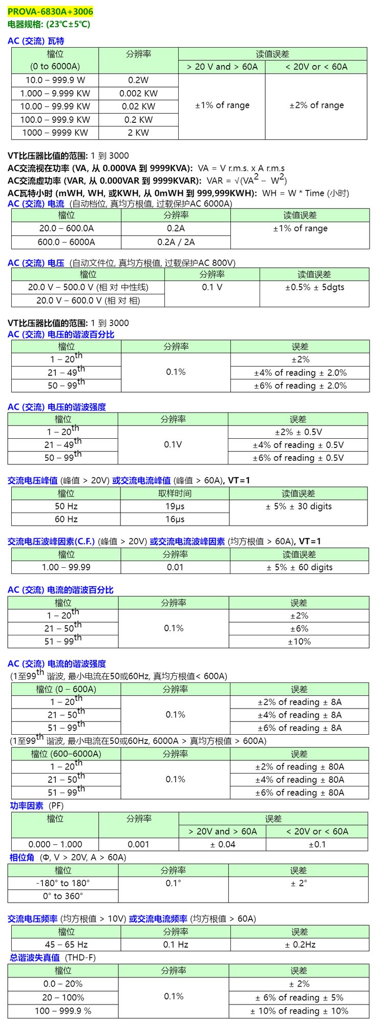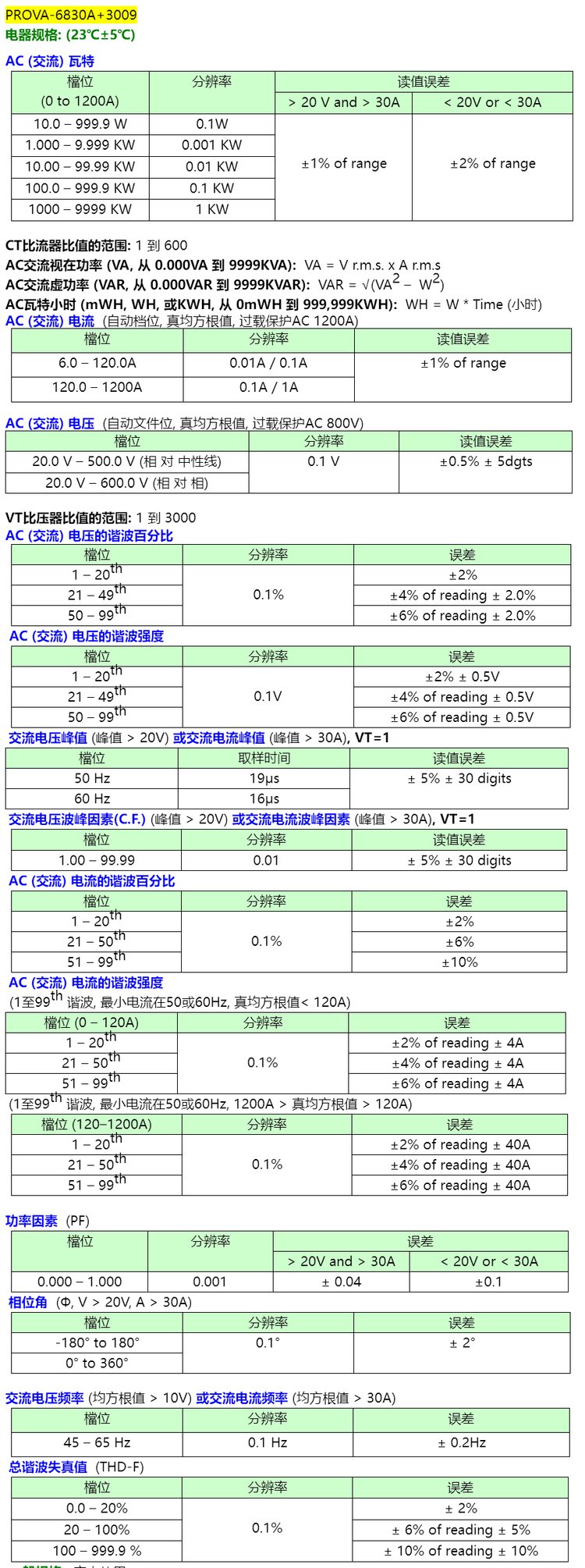 PROVA-6830A 3009/3007/3006三相电能质量分析仪电力谐波检测仪 品牌 | 泰仕TES | ||