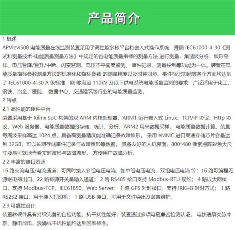 类型 | 电能质量在线监测装置 | ||