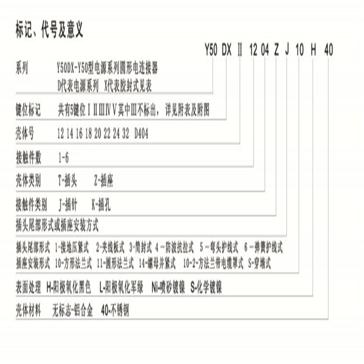 执行标准:Q/321283LSB04-2006《Y50系列圆形电连接器》