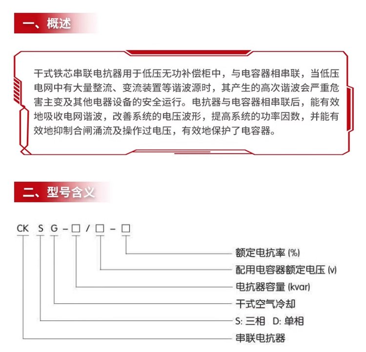 50KVA电容器配套三相串联电抗CKSG-3/0.45-6铁芯补偿滤波电抗器 品牌 | 晨昌 | ||