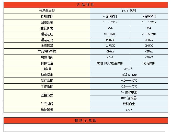 对射型光电开关PR18-TM10DNO 5-30VDC带极性接反保护及输出短路保护功能