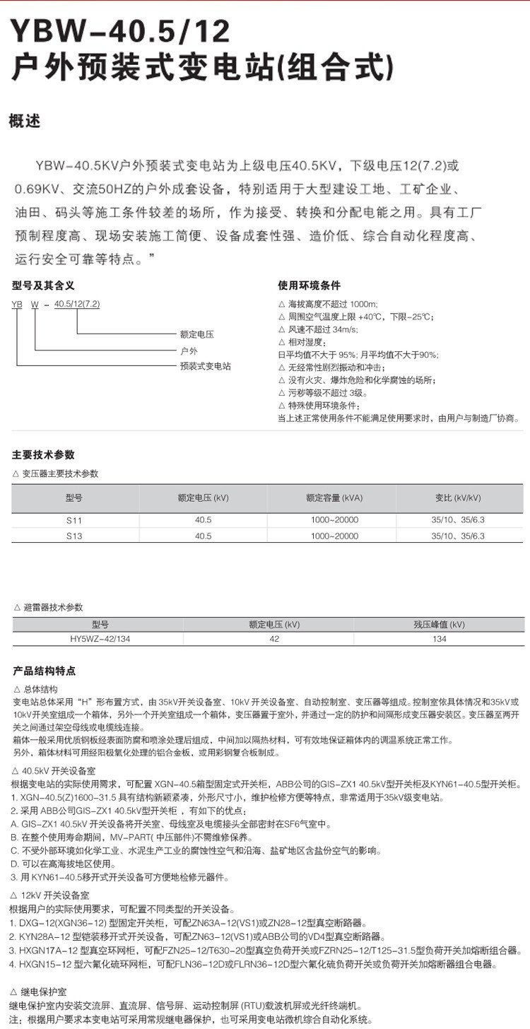 长高高压电力YBW欧式箱变成套配电房户外预装式变电站800kva