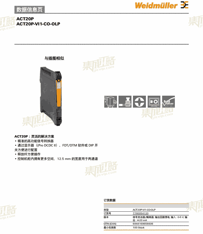 魏德米勒 集成工略信号隔离器ACT20P-VI1-CO-OLP