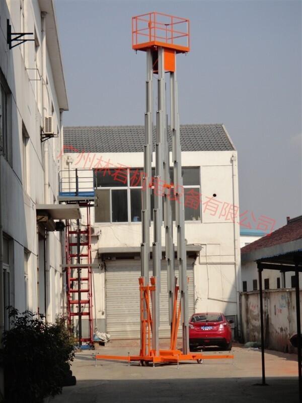 四立柱铝合金升降机: 整体采用高强度铝型材精制而成由于型材强度高,采用四桅柱式结构,稳定性极好,运转灵活,载重量大,平台面积大,推行方便。它轻盈的外观,能在极小的空间内发挥极高的举升能力。使升降台的偏转与摆动极小。