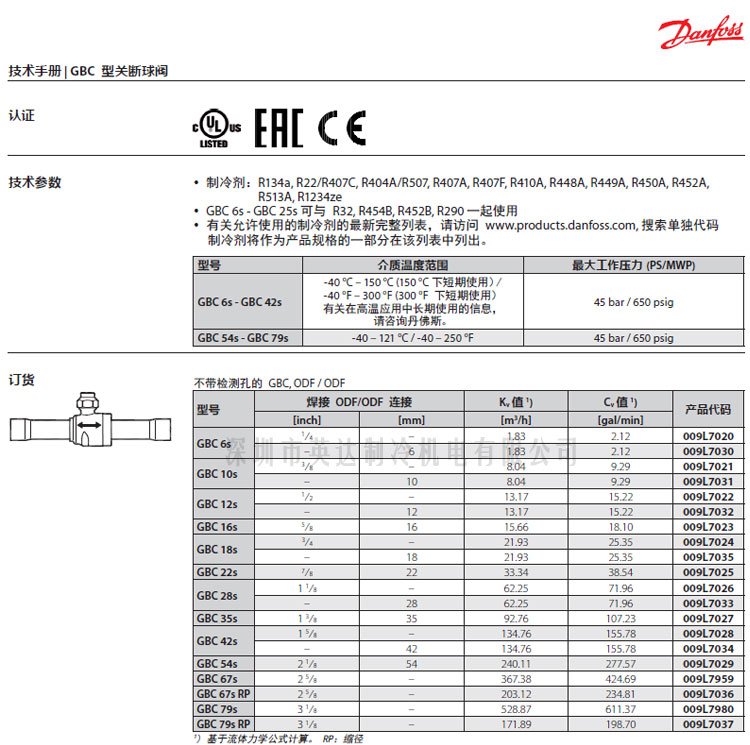 Danfoss丹佛斯球阀带检测口制冷空调用球型截止阀GBC6S/009G7050 品牌 | 丹佛斯 | ||