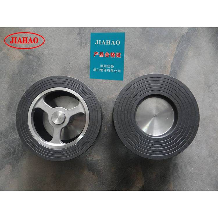 佳豪H71H-16C H71H-25C H71H-32C H71H-40C碳钢对夹式单向止回阀,对夹式单向阀,对夹式止回阀,对夹式逆止阀,采用碳钢材质,发黑处理,阀板阀座弹簧采用304不锈钢,具有耐压高,耐腐蚀的优点,止回阀采用法兰连接方式,有密封线密封,用途广泛。