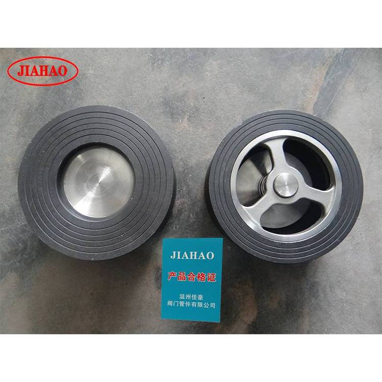 佳豪H72H-16C H72H-25C H71H-25C H72H-40C碳钢对夹式止回阀单向阀,碳钢材质,发黑处理,耐压高 耐腐蚀,对夹式止回阀也叫对夹式单向阀,法兰连接方式,弹簧单板式构造简单实用,主要规格有DN15 DN20 DN25 DN32 DN40 DN50 DN65 DN80 DN100 DN125 DN150 DN200等,在民用水暖工程,机电工程,电力工程,机电一体化工程,空压机工程,化工工程,气源工程,液压工程多行业应用。