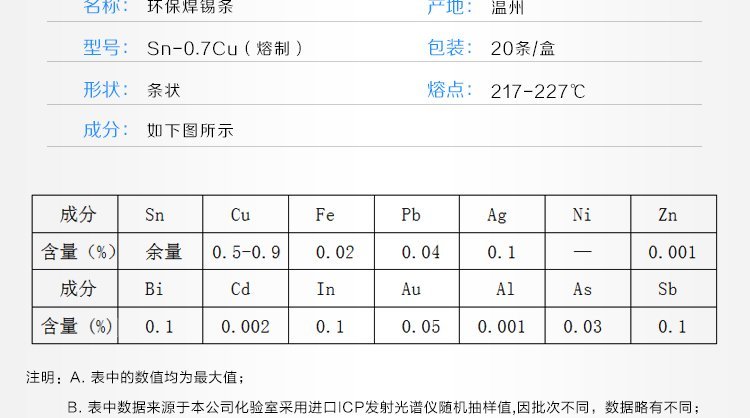 江浙沪焊锡条厂家 Sn0.7Cu无铅锡条 强力大型工厂 锡棒0.5kg/条 品牌 | 强力 | ||