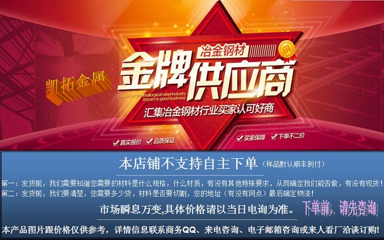 本公司是自主生产自主销售,线上线下一起出货销售,仓库库存多,不一定能及时更新网上的库存,实际出货时万一有缺单的产品,我们将会做退款处理,给您带来的不变,敬请谅解!冶金产品属于特殊产品,价格随时都有波动,本店所有产品(产品价格,产品图片)仅供参考,详情信息联系商务QQ、电子邮箱咨询或来人看厂或来电咨询。