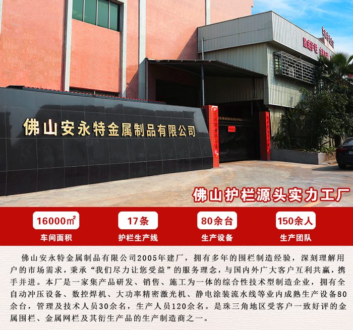 工艺流程:开 料→锻 打→弯 花→焊接组装→打 磨→热浸镀锌→抛 光→喷 漆→烤 漆→表面装饰效果漆→喷透明漆 →包 装铁艺护栏的防锈处理及防锈工艺流程 目前铁艺护栏有效、实用的防锈方法是热浸镀锌。即在铁艺护栏在熔化的锌液中在表面生成锌铁合金层及纯锌层,用以隔绝铁艺工件被氧化的机会。防锈期长达20-50年以上,期间无需维修,安全可靠,是铁艺工件的佳防锈方法
