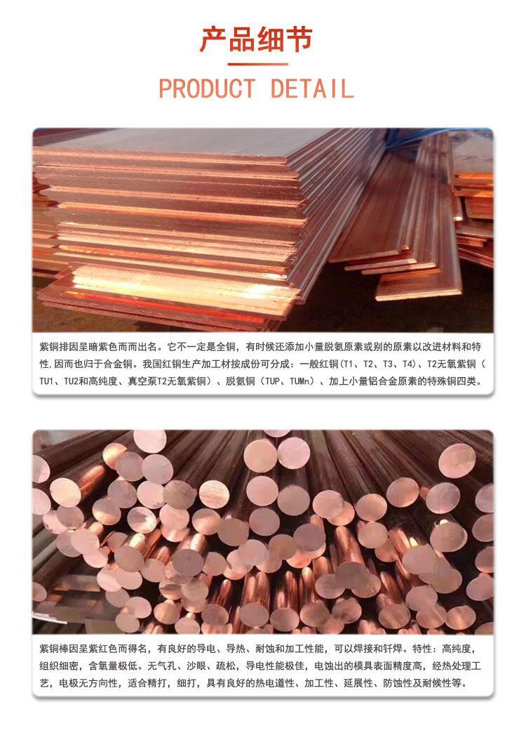 5.紫铜排:紫铜条、紫铜扁条、进口紫铜排、国标紫铜排、环保紫铜排、电力专用紫铜排、高电导紫铜排、镀锡铜排、母线紫铜排、高纯度紫铜排、无氧铜排、磷脱氧铜排等