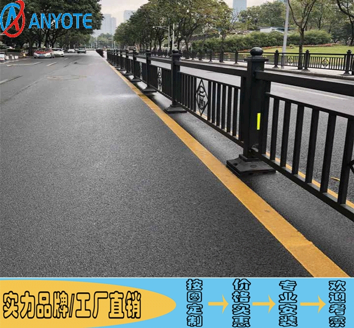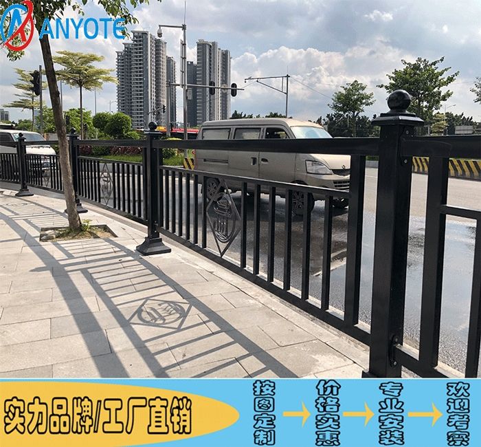 2018新款深标护栏,也称为港式护栏、市政护栏、路侧护栏、人非隔离栏,中间隔离栏采用2016式路中护栏,颜色统一采用浅灰色。道路两侧隔离护栏往人行道内移,设置在人行道与外侧绿化带之间。绿化带中隔离网色彩统一规范为黑色,现有非黑色隔离网应重新刷漆成黑色。所有款式的市政道路护栏表面均为热镀锌防腐处理,为全焊接式,切吸焊缝处全进行热镀锌处理,防止钢铁基材的生锈。无论在何种恶劣环境下,产品都不会生锈。