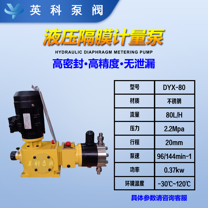 液压隔膜计量泵DY-X80/3.5不锈钢304变频防爆定量加药泵英科牌 功率 | 0.55KW | ||