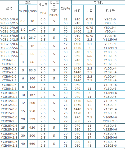 规格型号 | YCB | ||