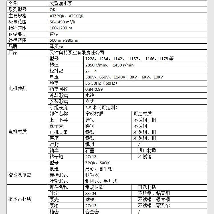 5、效率高、节能、单级扬程高、流量大、扬程高、进口节能电机、如:AT200QJ系列潜水电机可做到110KW(外径184mm)、2级转速(2900/分钟)可以做到410KW、水泵外径可以做到134mm。