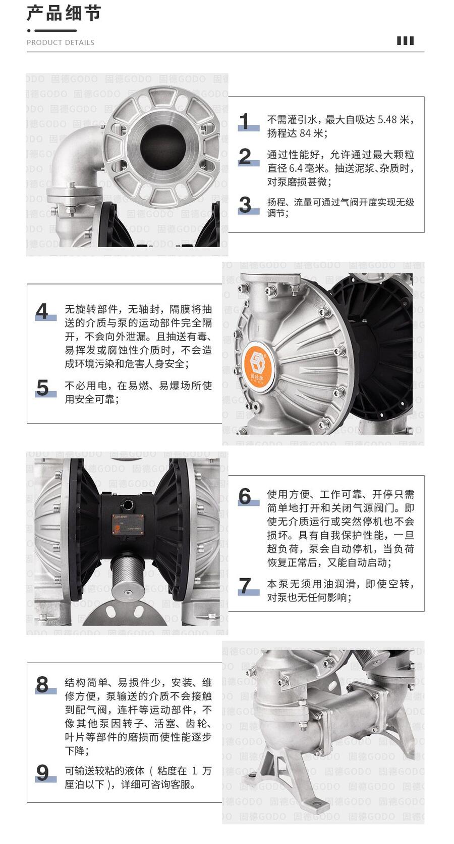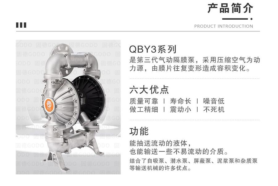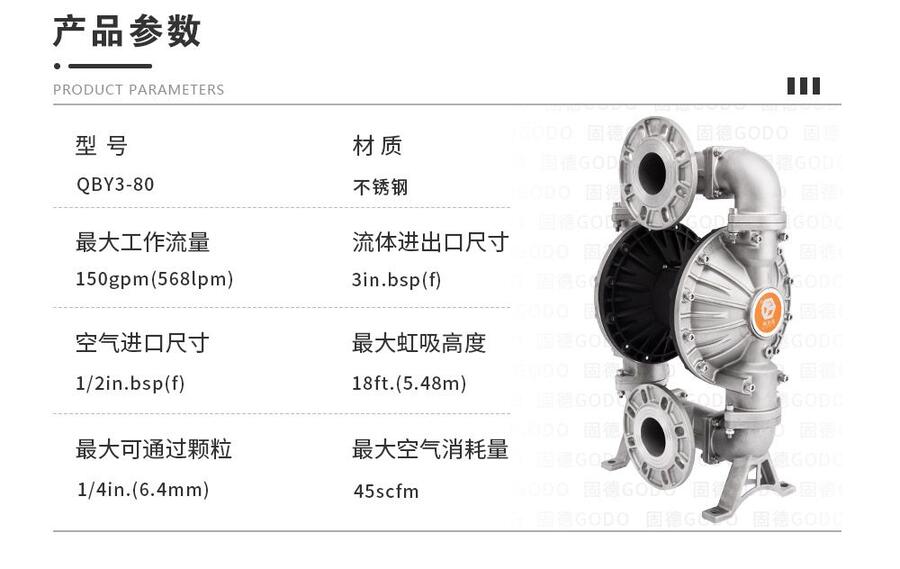 第三代气动隔膜泵边锋机械固德牌三寸口径不锈钢304材质QBY3-80PTFF