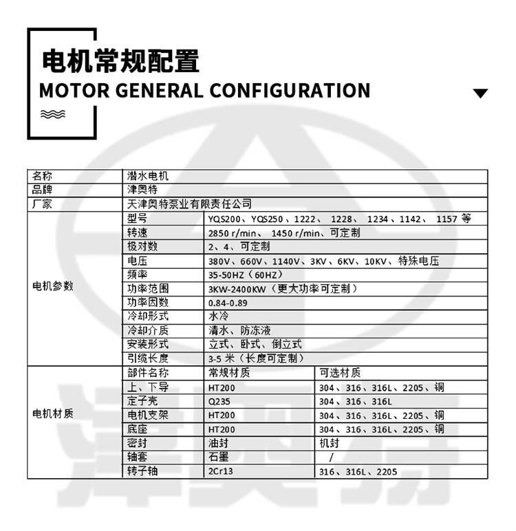 潜水电机-充水式三相异步电机-结构简单-功率大-效率高-津奥特