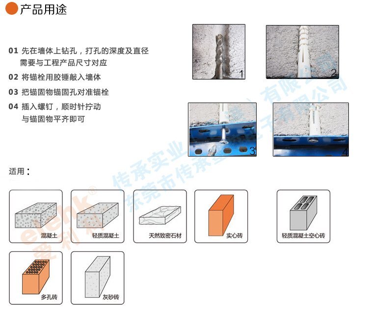 功能用途 | 用于墙体上固定物品,连接紧固 | ||