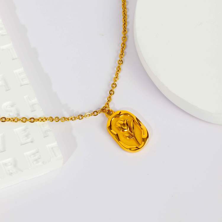 恒达鑫饰品配件不锈钢镀14K金玫瑰花铸造吊坠项链支持定制