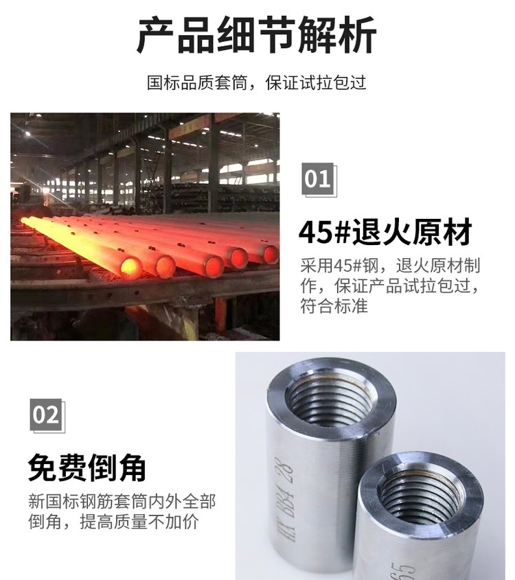 25国标直螺纹钢筋连接套筒四级钢正反丝钢筋变径接头接驳器