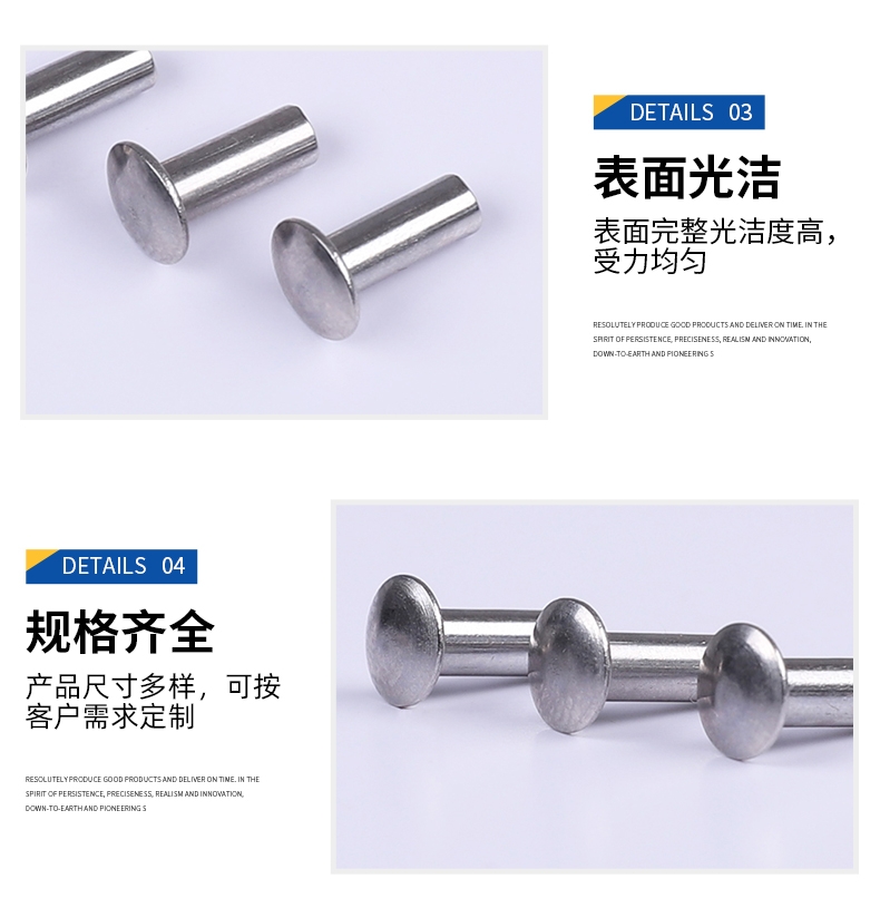 304不锈钢扁圆头半空心铆钉 箱包铆钉