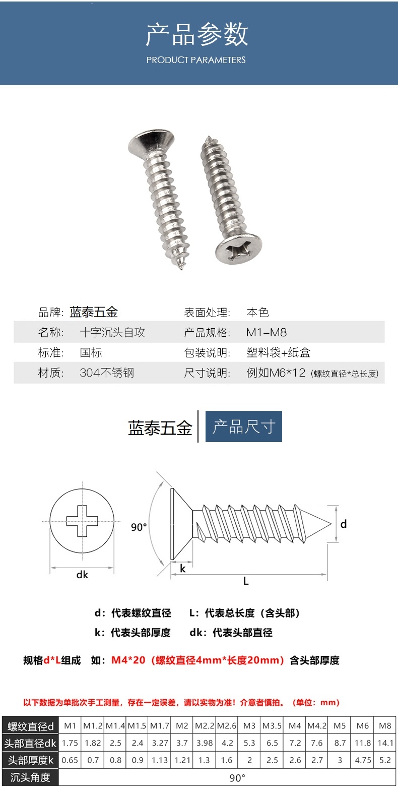不锈钢沉头十字自攻螺丝 |