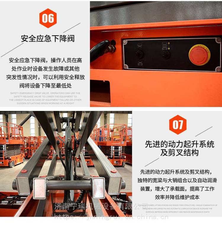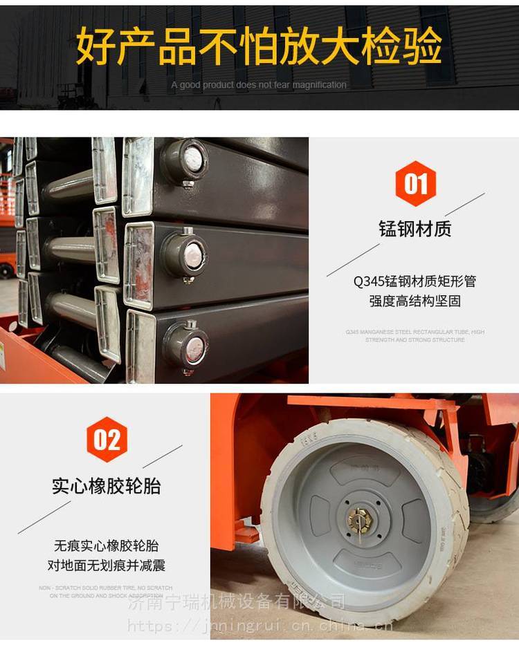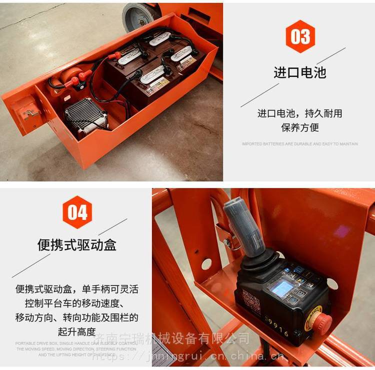自行式剪叉式升降机的主要特点是用户无需下降升降平台即可控制机械升降行走,并可控制设备前往台上其他工作场所。 该设备本身具有步行和转向驱动功能,无需手动牵引,无需外接电源。 灵活方便的机芯使高空作业更容易,更快捷。 是现代企业高效安全生产的理想高空作业设备。
