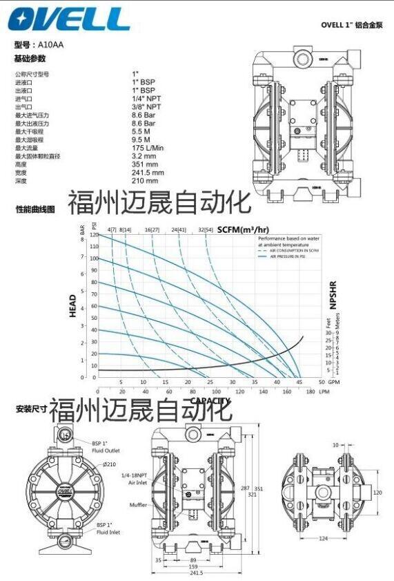 齐齐哈尔代理美国OVELL奥锐力1.5寸铝合金/PTFE隔膜泵A15AATTA