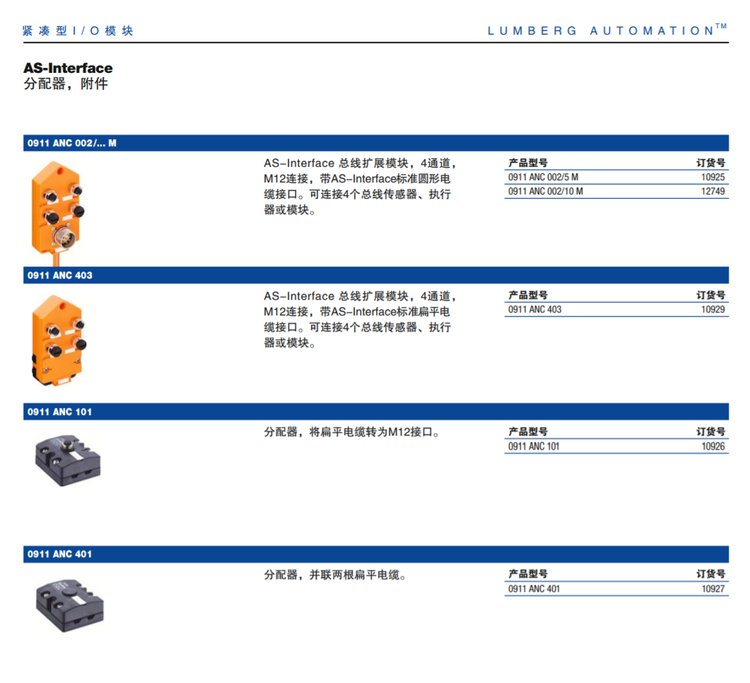 lumberg隆堡连接器0911 ANC 002/10 M分配器总线扩展模块传感执行器 品牌 | Lumberg | ||